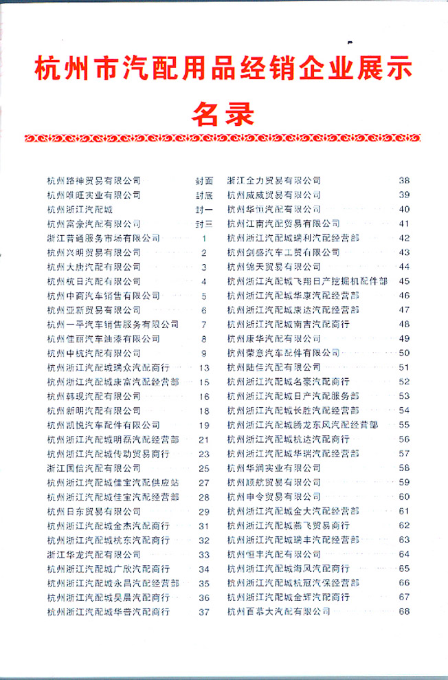 杭州市汽車配件用品經(jīng)銷企業(yè)展示名錄