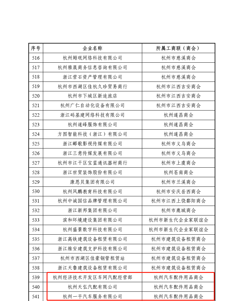 有四家企業(yè)獲得杭州市工商聯(lián)調(diào)查問卷工作優(yōu)秀企業(yè):分別為:杭州一平汽車服務(wù)有限公司、杭州經(jīng)濟(jì)技術(shù)開發(fā)區(qū)車網(wǎng)汽配經(jīng)營部、杭州天弘汽配有限公司、杭州浙江汽配城嘉悅汽配商行