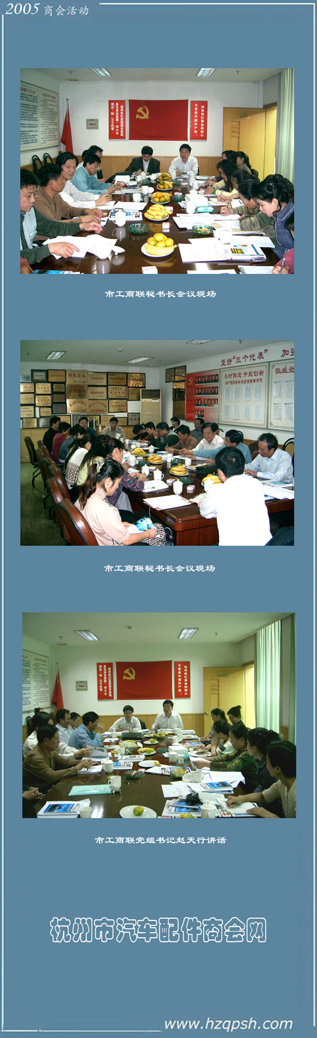 2005年10月18日應(yīng)汽配商會(huì)的邀請(qǐng),市工商聯(lián)行業(yè)商會(huì)秘書長(zhǎng)會(huì)議在浙江汽配城三樓小會(huì)議室召開。
