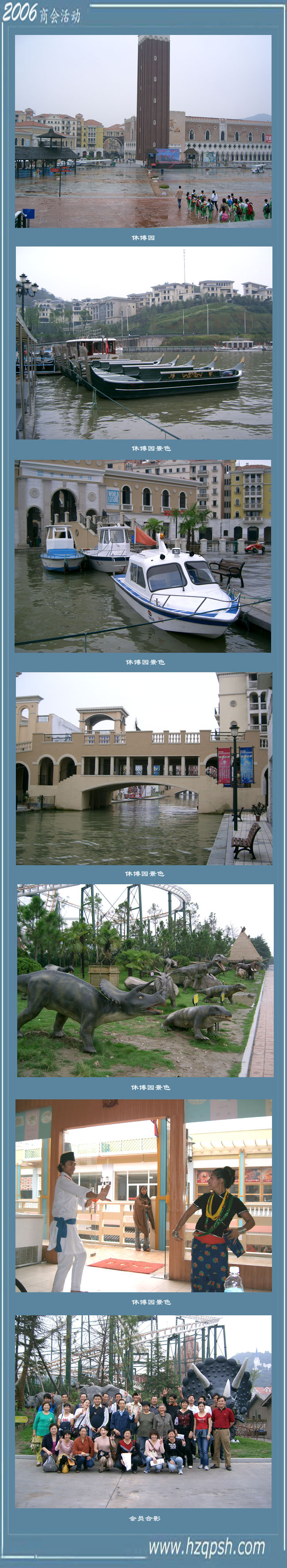 2006年4月22日至10月22日,杭州舉辦了2006年世界休閑博覽會。這是世界休閑組織、國家旅游局等有關(guān)部委、中華全國工商聯(lián)、省、市人民政府,首次聯(lián)合舉辦的主題博覽會。此次博覽會以“休閑??改變?nèi)祟惿睢睘橹黝},吸引了一百多國家與地區(qū)參展,一千余萬人前往參觀。9月13日依據(jù)杭州市工商聯(lián)的安排,商會組織了20余名會員前往杭州蕭山休博會進行了參觀。