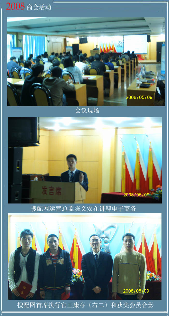 5月9日下午,商會和搜配網(wǎng)聯(lián)合在浙江汽配城三樓會議室舉辦“中國汽車零部件流通電子商務(wù)峰會’。共有80余家會員單位參加了這次項目推薦會。商會秘書長楊朝平在會上致辭。搜配網(wǎng)運營總監(jiān)王義安深入淺出地講解了電子商務(wù)在汽配流通行業(yè)的基本功能和發(fā)展的廣闊前景。
