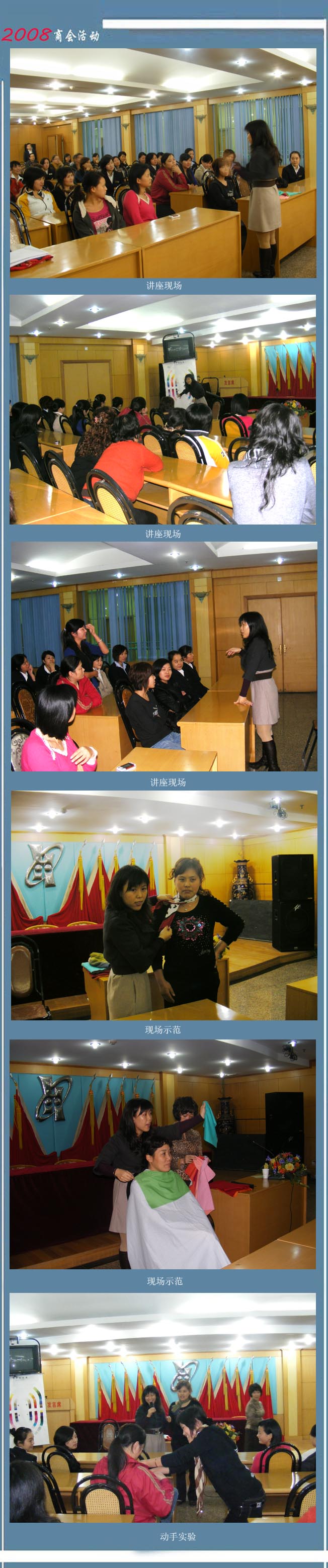 2008年11月6日商會邀請杭州完美色彩設計公司,在浙江汽配城三樓大會議廳舉辦了完美色彩塑造時尚女性講座,50余名女會員參加聽課。講座詳細講解絲巾系法、個人服飾色彩搭配技巧、如何把握個人的裝扮風格等內容。通過這次講座,女會員們增加了許多穿衣打扮,色彩搭配方面的知識。講座受到了參加者的好評和歡迎。