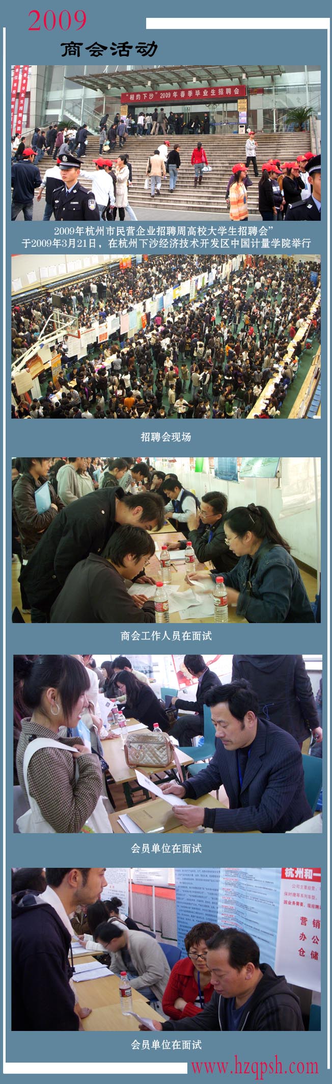 為了積極應對當前經(jīng)濟和就業(yè)形勢,搭建民營企業(yè)與高校大學畢業(yè)生間的供需對接平臺,幫助高校畢業(yè)生到民營企業(yè)就業(yè),市勞動和社會保障局、市總工會、市工商聯(lián)、市教育局共同舉辦的“2009年杭州市民營企業(yè)招聘周高校大學生招聘會’,于2009年3月21日,在杭州下沙經(jīng)濟技術開發(fā)區(qū)中國計量學院舉行。