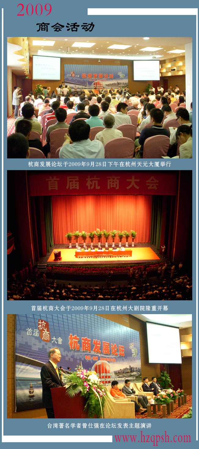 由杭州市委、市政府主辦的首屆杭商大會(huì)于2009年28日上午在杭州大劇院隆重開幕。本地杭商代表、外地來杭投資杭商代表和外省市的170多名杭商代表,及杭州各級(jí)各部門領(lǐng)導(dǎo)、負(fù)責(zé)人共1100多人參加大會(huì)。