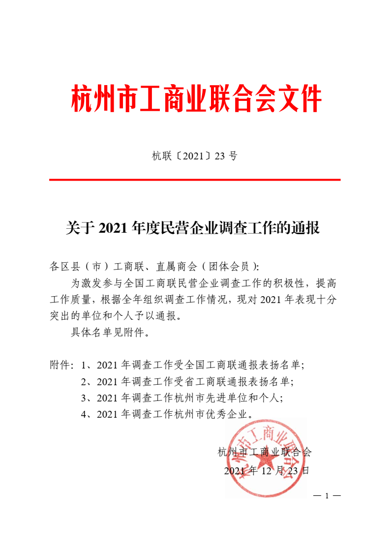 為激發(fā)參與全國工商聯(lián)民營企業(yè)調(diào)查工作的積極性,提高工作質(zhì)量,根據(jù)全年組織調(diào)查工作情況,杭州市工商聯(lián)發(fā)布《關(guān)于2021 年度民營企業(yè)調(diào)查工作的通報(bào)》(杭聯(lián)〔2021 〕23 號),通報(bào)了在全國工商聯(lián)民營企業(yè)調(diào)查工作中表現(xiàn)十分突出的單位和個人。其中杭州市汽配商會獲評調(diào)查工作先進(jìn)單位,秘書處沈相紅獲評調(diào)查工作先進(jìn)個人。