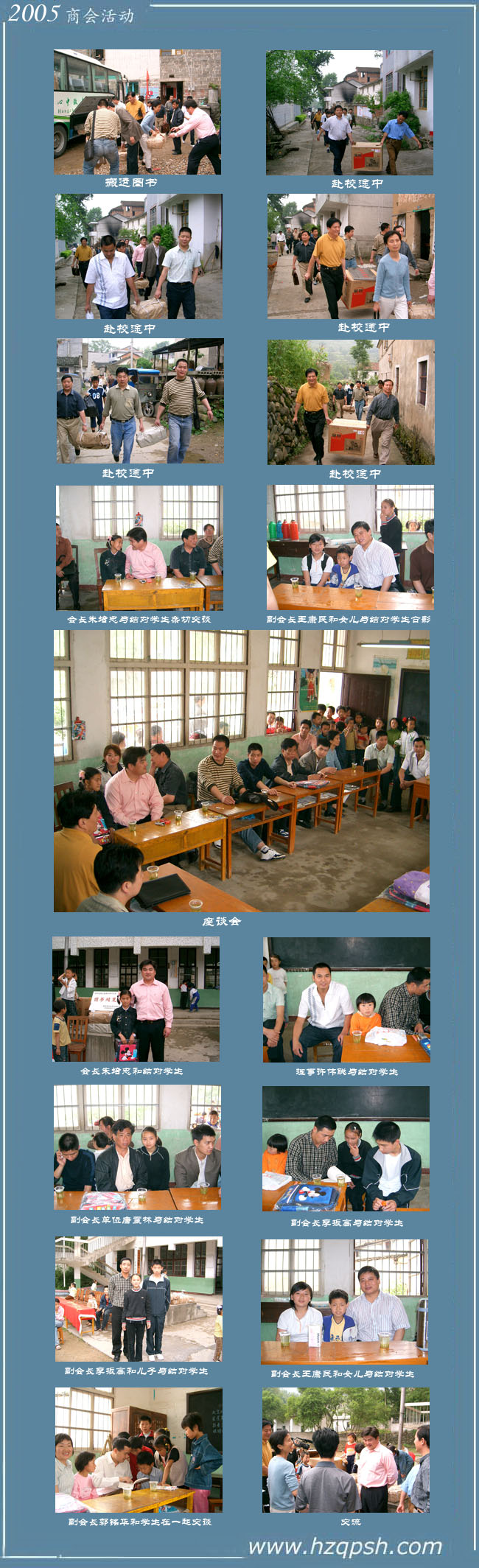2005年5月14日,由市工商聯(lián)會員處徐副處長帶隊,桐廬縣工商聯(lián)韋會長陪同,杭州市汽配商會會長朱培忠率領(lǐng)會員20余人赴桐蘆畬族莪山鄉(xiāng)中門小學(xué)開展“送愛心、助貧困”希望工程活動,朱會長為這次活動捐助了2臺電視機,商會的會員們都慷慨解囊,有8位會員和貧困學(xué)生結(jié)成對子,還為孩子們帶去了大批書籍和學(xué)習(xí)用品,這是杭州市汽配商會自成立以來第三次舉辦這樣的活動。