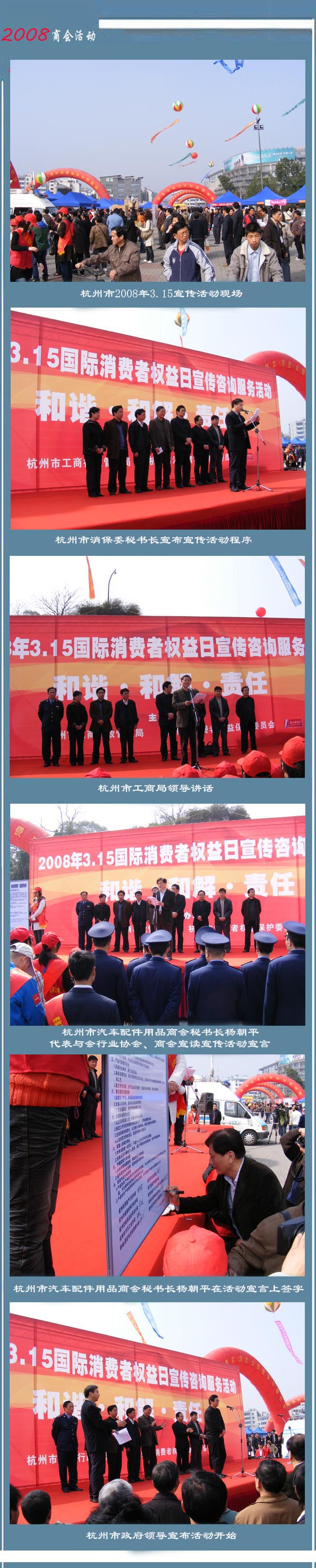 由杭州市工商局、杭州市消費(fèi)者保護(hù)權(quán)益委員會組織的3.15消費(fèi)者宣傳活動,3月14日上午在杭州吳山廣場舉行。杭州市汽車配件用品商會楊朝平秘書長代表到會10家參加活動的行業(yè)協(xié)會、商會,宣讀了3.15宣傳活動宣言。