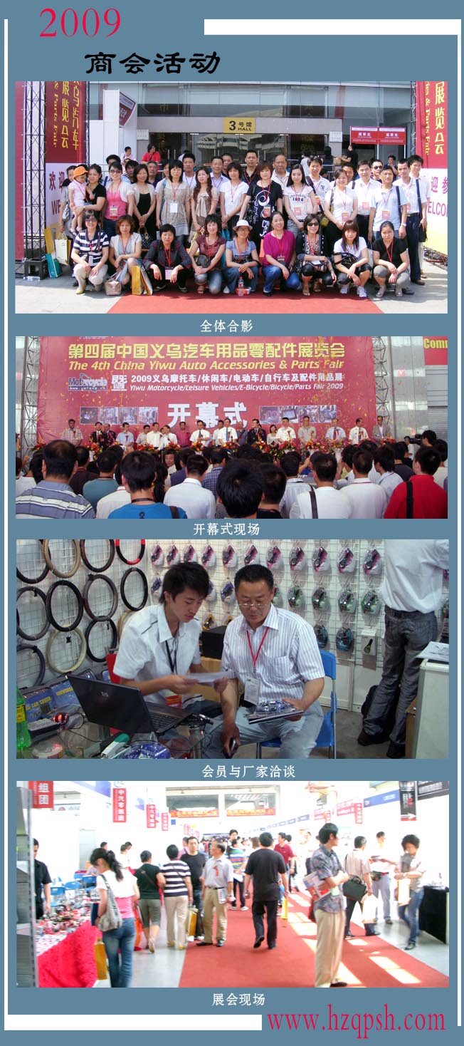 第四屆中國(guó)義烏汽車用品零配件展于2009年5月16日在義烏梅湖會(huì)展中心開(kāi)幕。中國(guó)汽車零部件工業(yè)公司總裁陳康仁、浙江省汽車用品協(xié)會(huì)會(huì)長(zhǎng)沈中明等嘉賓,以及義烏市政府相關(guān)領(lǐng)導(dǎo)出席了開(kāi)幕儀式。