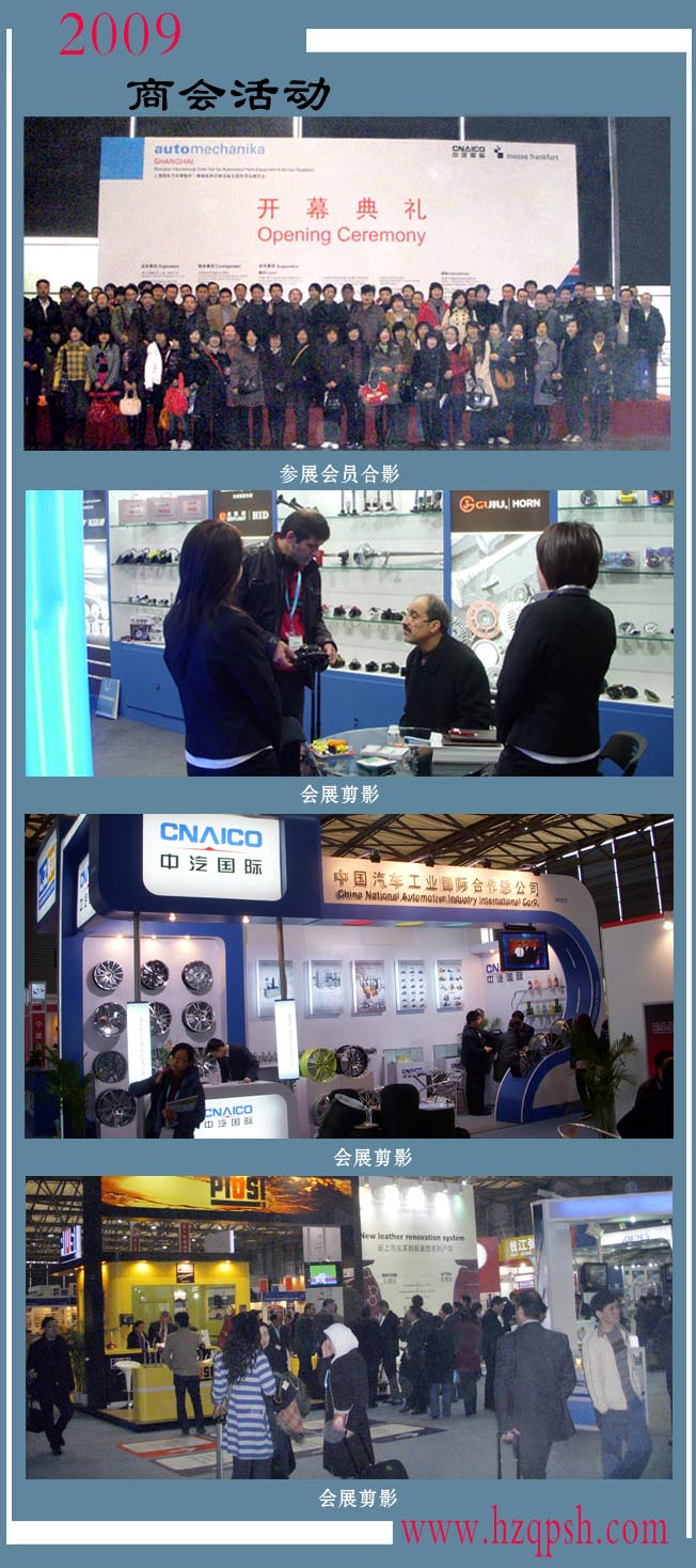 由法蘭克福展覽(上海)有限公司和中國汽車工業(yè)國際合作總公司共同舉辦的2009上海國際汽車零部件、維修檢測診斷設(shè)備及服務用品展覽會, 2009年12月9日至11日在上海新國際博覽中心隆重舉行。展會創(chuàng)紀錄地迎來了24個國家和地區(qū)超過2400家參展商,在九個展館內(nèi)展示自己的最新科技技術(shù)和產(chǎn)品,展出總面積超過10萬平方米。